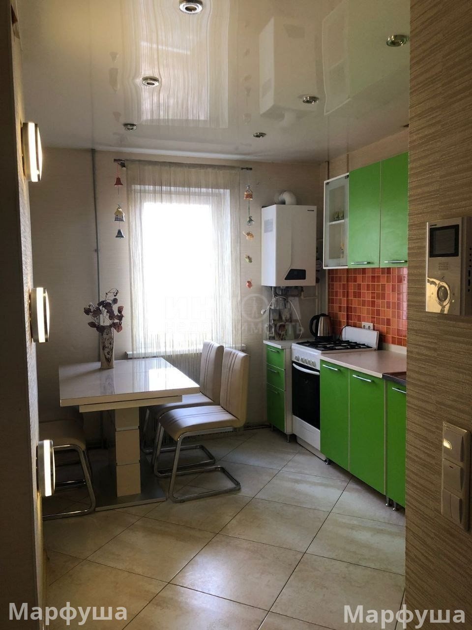 г. Луганск Продам 4 – комнатную квартиру в Артём.районе (кв.Заречный д-9). Планировка НЕОБЫЧНАЯ!!!! Площадь: 94.1м, этаж 6/9,с автономным отоплением + тёплый пол (кухня, прихожая, ванная, с/узел). Преимущества: необычная планировка, современный дизайн, видео домофон, большая лоджия + огромный балкон на две комнаты. Не угловая. Натяжные потолки, современная плитка, отличное месторасположение: рядом банк, почта, школы, садики, супермаркеты, рынок, кольцо Мирного… всё в шаговой доступности. Квартира просторная, стильная, тёплая, с автономным отоплением, не дорогая в обслуживании: идеальный вариант для семьи!!! Возможна ипотека