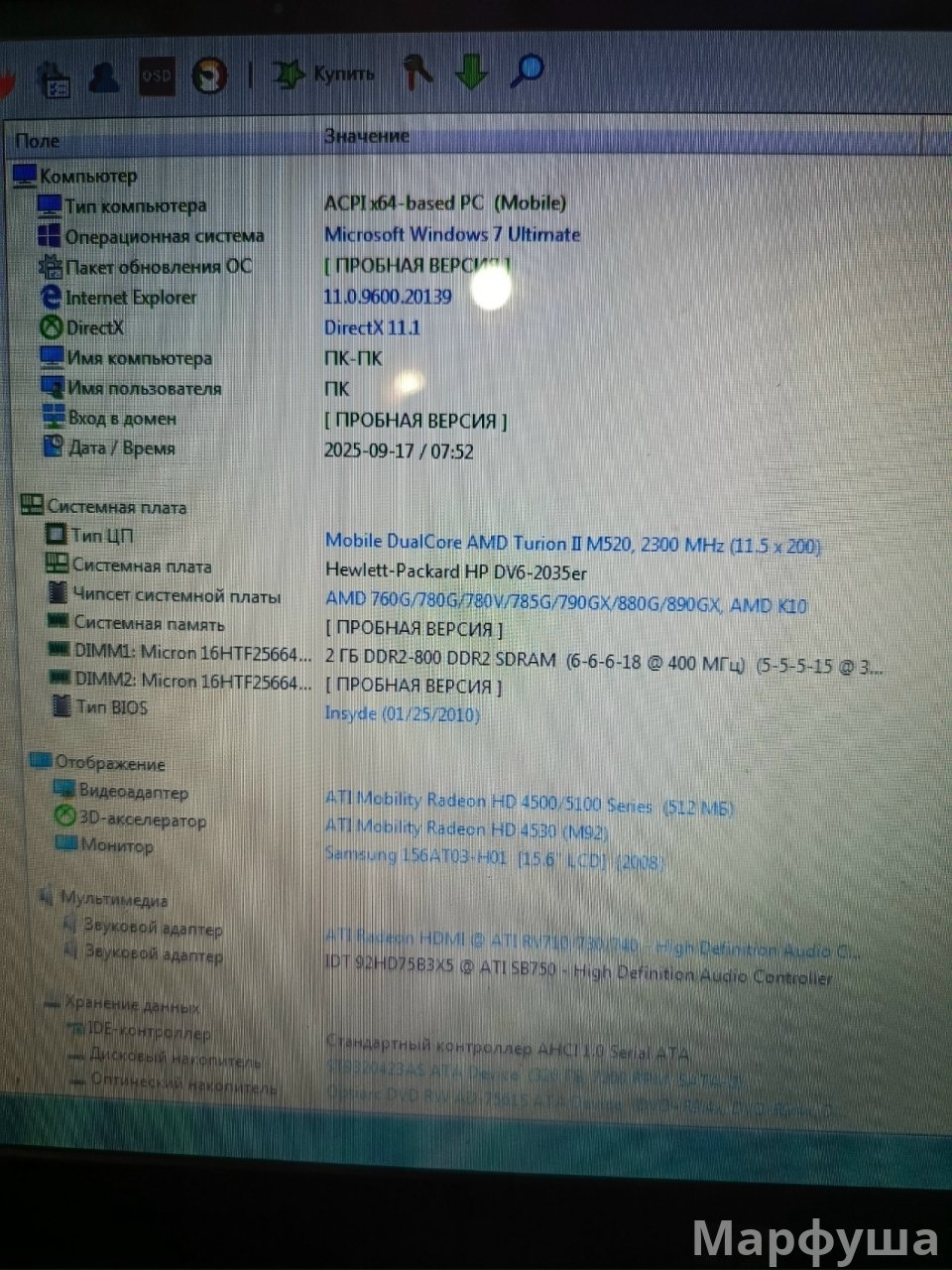 Продам ноутбук hp dv6.