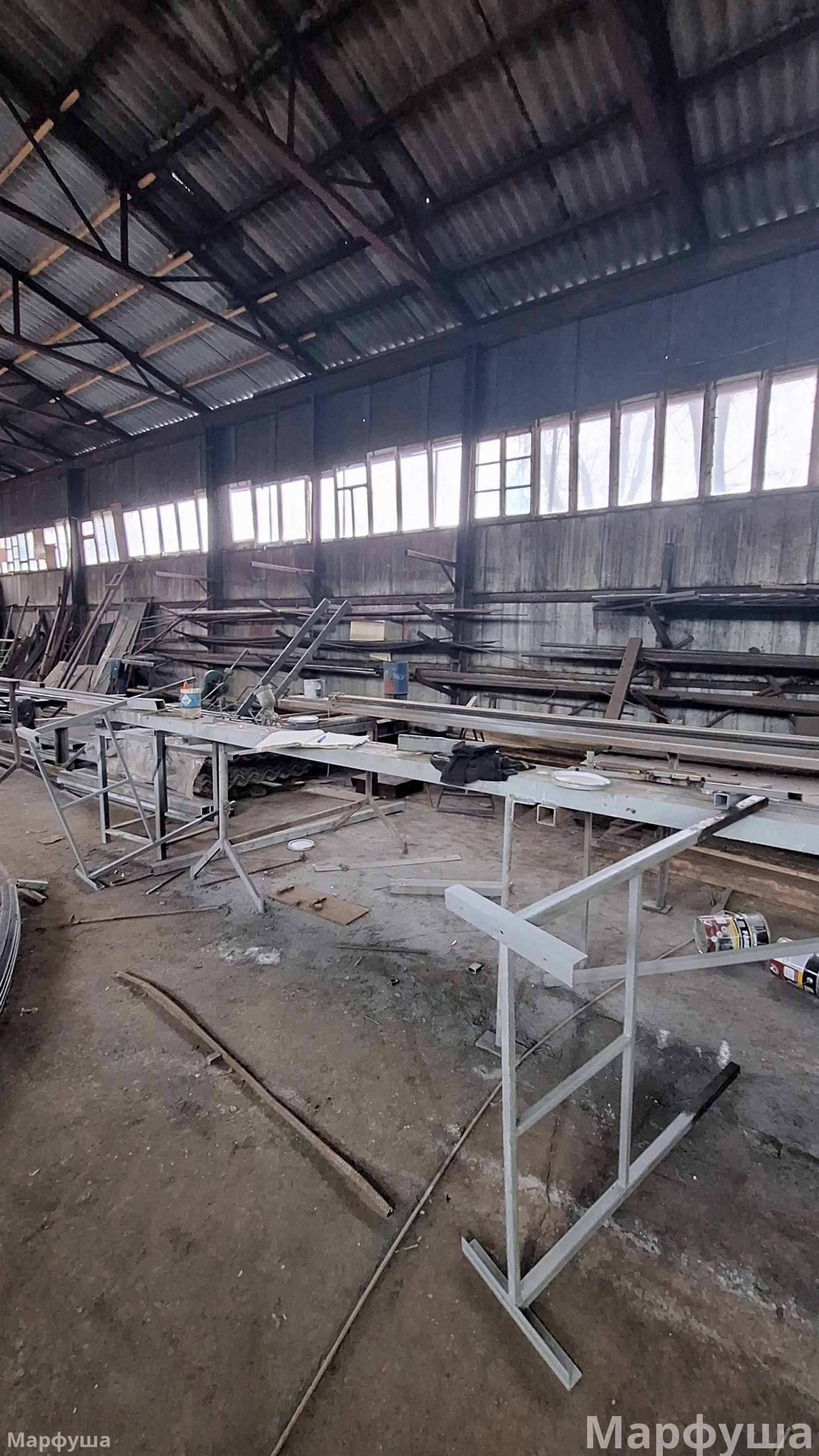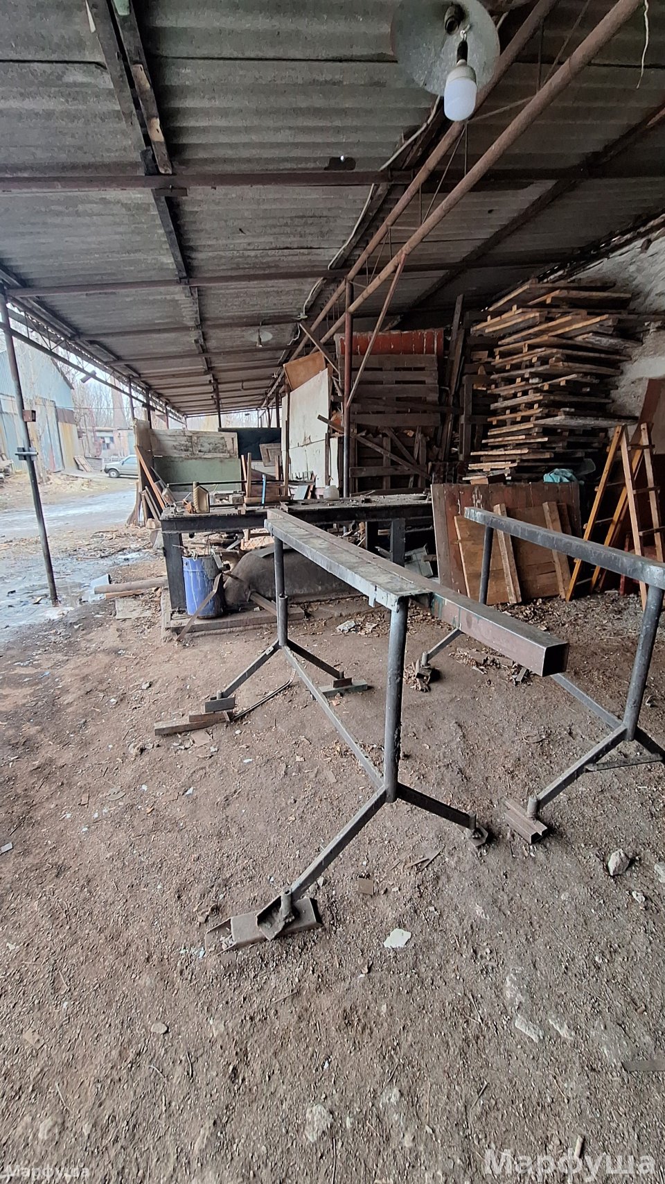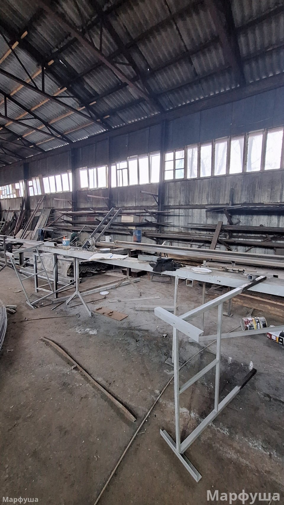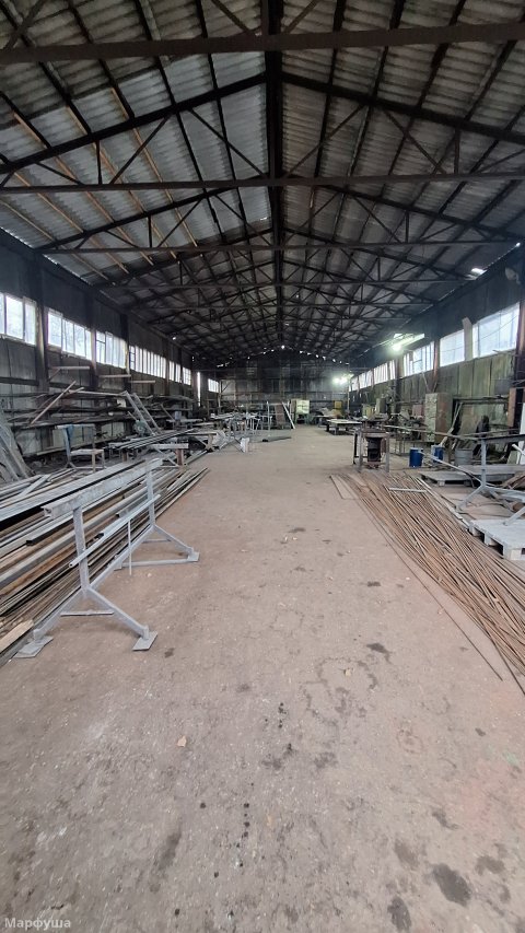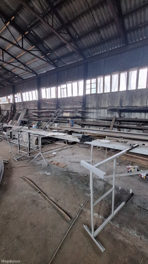 Город Луганск, район Ж/Д вокзала, улица Рудя. Продается несколько производственных помещений на огражденной территории (0,3га) Ранее на базе изготавливались металлоконструкции всех видов и типов. Возможно приобретение как всего целиком, так и только зданий и территорий без станков, наполнения и имущества. К зданиям и помещениям относятся: 1) Ангар площадью 425 м2. Выполнен из металлоконструкций, общит профлистом. Кровля- шифер, электрифицирован. 2) Здание общей площадью 285 м2, состоящее из нескольких помещений (2 больших и 2 малых), выполнено из бетонных блоков, электрифицировано, подведена вода и канализация, печное отопление. + одно большое помещение, разделено перегородками на: раздевалку со шкафами, кладовку, комнату прораба. 3) На территории есть три навеса (металл и шифер), один примыкает к бетонному зданию. Под ним находится гильотина для рубки металла до 5-6 мм; два примыкают к ангару и огорожены, для хранения строительных лесов "козлов", лестниц и прочего инвентаря, включая газовые и кислородные баллоны. Все станки и электрооборудование в рабочем состоянии. Территория огорожена, есть сторож. Удобное логистическое местоположение. Подробности по телефону