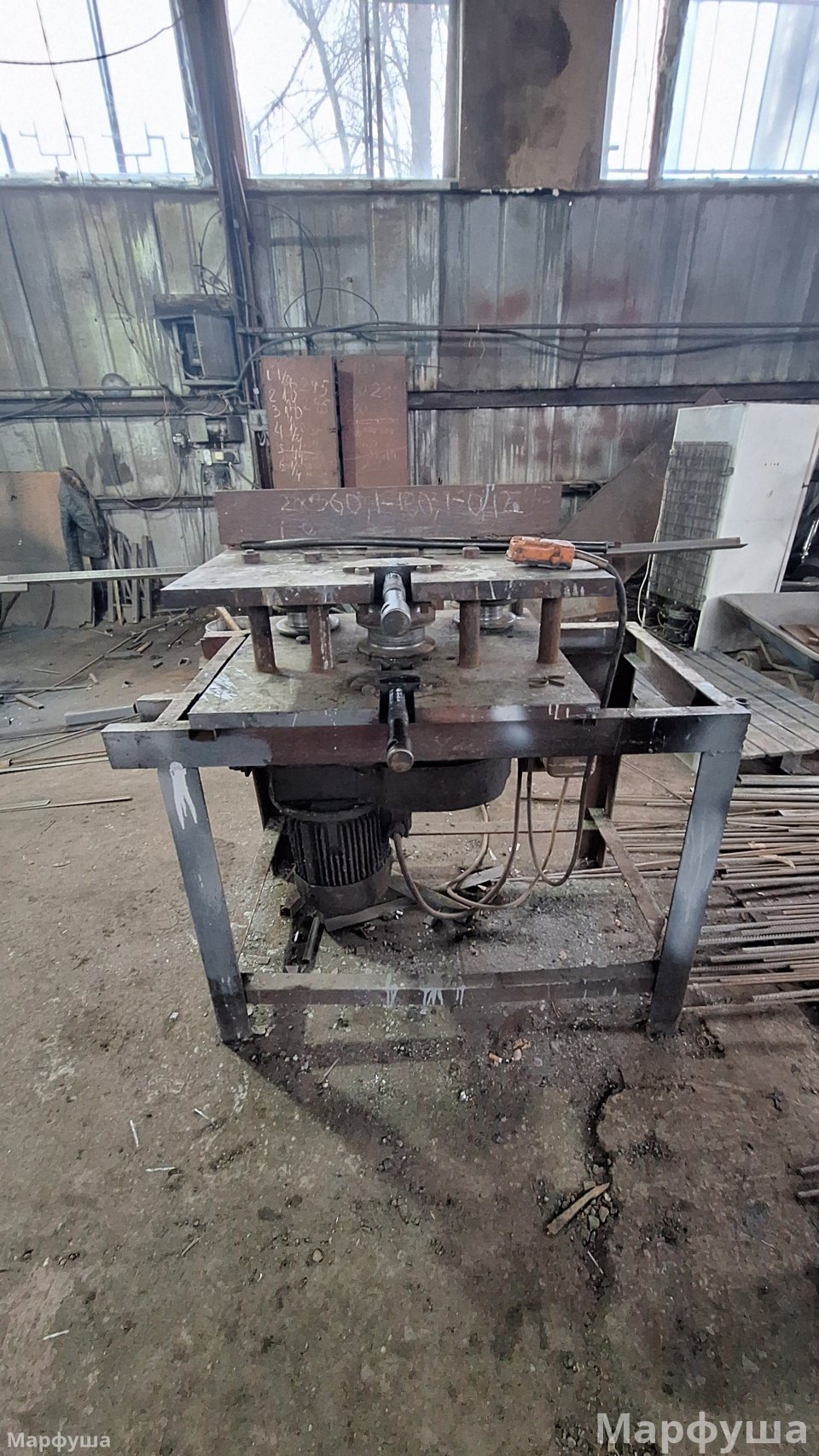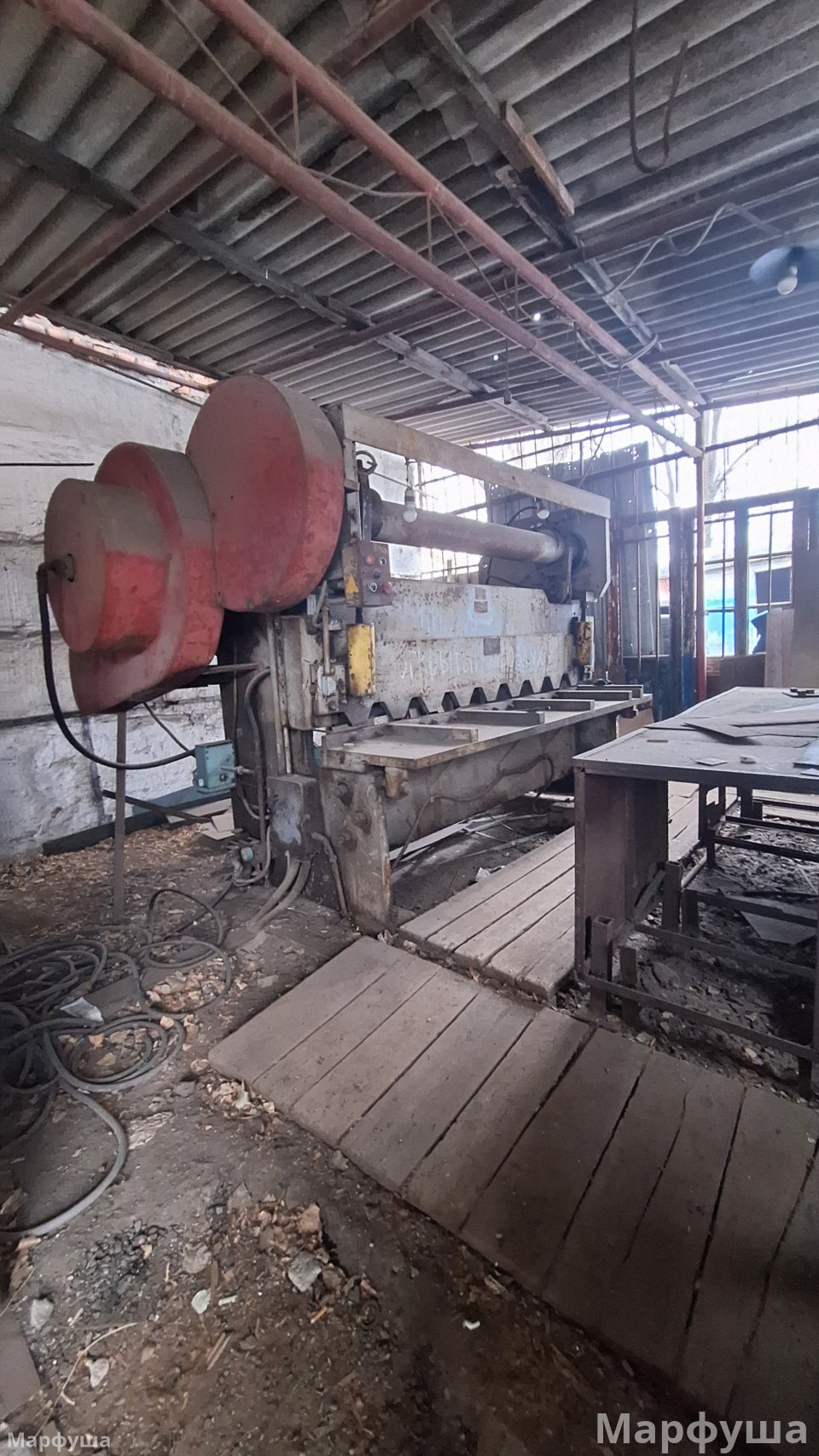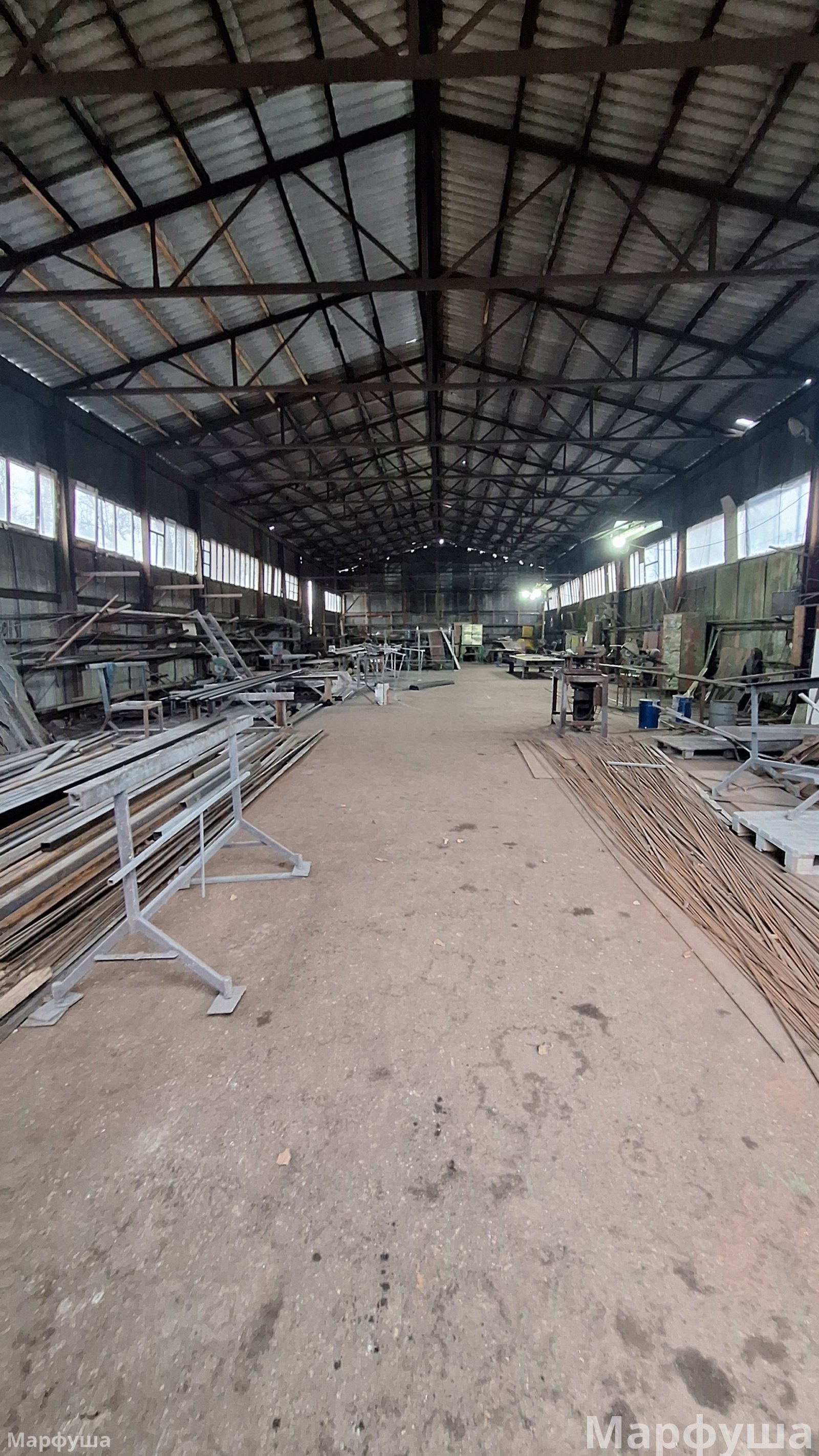 Город Луганск, район Ж/Д вокзала, улица Рудя. Продается несколько производственных помещений на огражденной территории (0,3га) Ранее на базе изготавливались металлоконструкции всех видов и типов. Возможно приобретение как всего целиком, так и только зданий и территорий без станков, наполнения и имущества. К зданиям и помещениям относятся: 1) Ангар площадью 425 м2. Выполнен из металлоконструкций, общит профлистом. Кровля- шифер, электрифицирован. 2) Здание общей площадью 285 м2, состоящее из нескольких помещений (2 больших и 2 малых), выполнено из бетонных блоков, электрифицировано, подведена вода и канализация, печное отопление. + одно большое помещение, разделено перегородками на: раздевалку со шкафами, кладовку, комнату прораба. 3) На территории есть три навеса (металл и шифер), один примыкает к бетонному зданию. Под ним находится гильотина для рубки металла до 5-6 мм; два примыкают к ангару и огорожены, для хранения строительных лесов "козлов", лестниц и прочего инвентаря, включая газовые и кислородные баллоны. Все станки и электрооборудование в рабочем состоянии. Территория огорожена, есть сторож. Удобное логистическое местоположение. Подробности по телефону