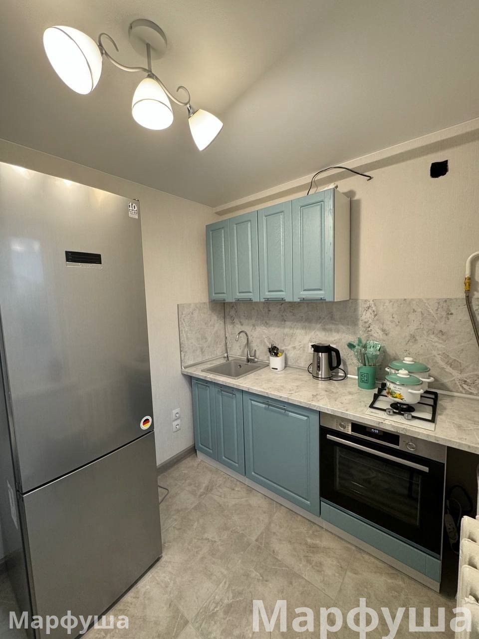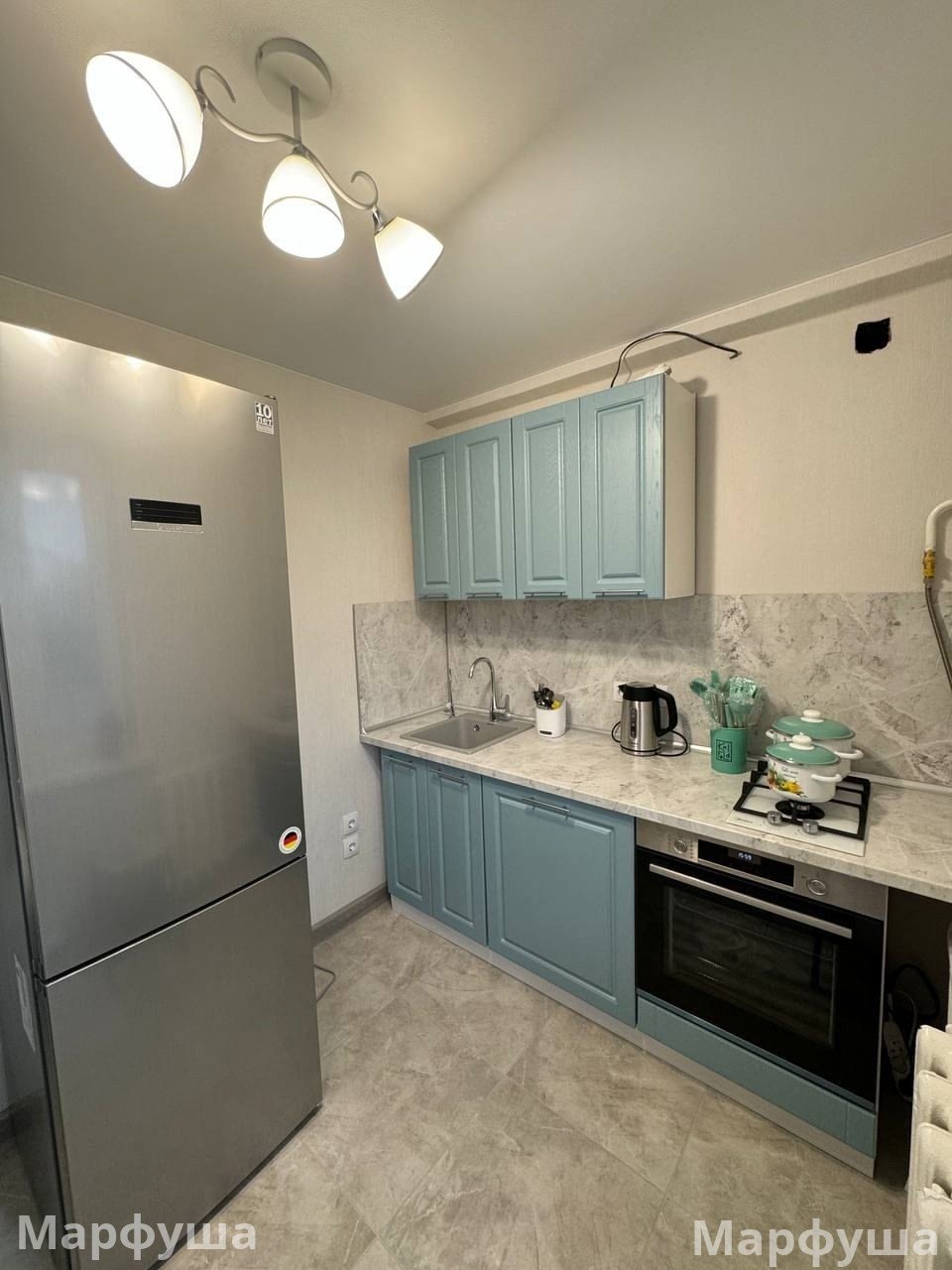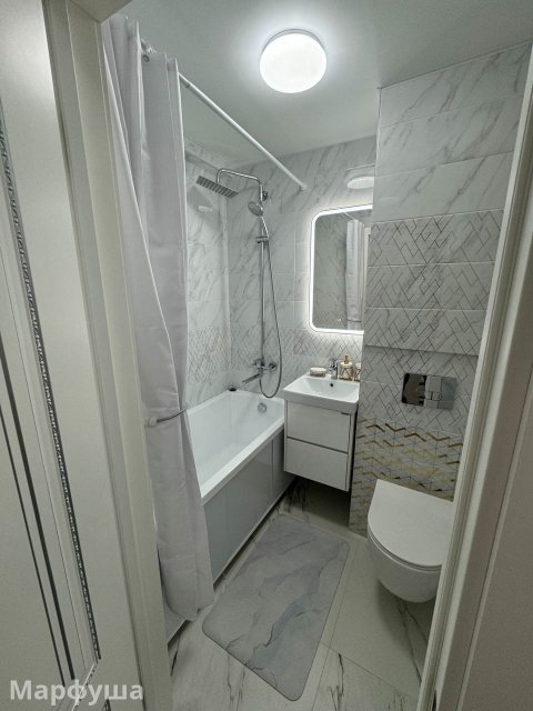Сделан евроремонт, установлена современная мебель (большая шикарная кровать, шкаф, письменный стол) и техника. Из техники есть все необходимое для комфортного проживания: кондиционер, холодильник, телевизор, стиральная машина, посудомоечная машина.