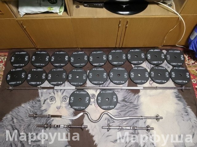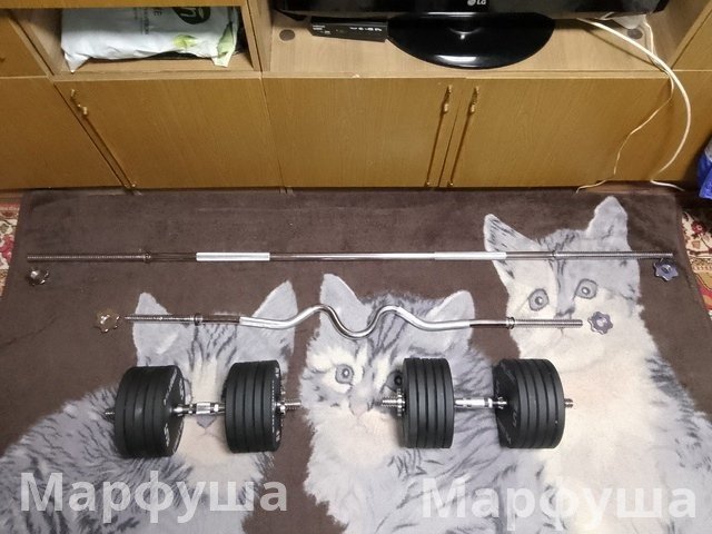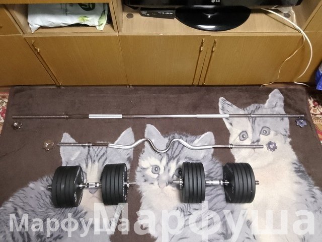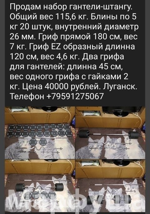Продам гантели-штангу. Общий вес 115,6 кг. Цена 40000 рублей. Луганск. Телефон +79591275067